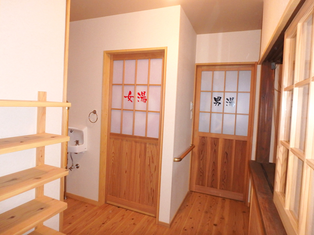 77.47u程度の地元で長年愛されている小さな温泉施設です。平成26年度中津市温泉施設改修モデル事業補助金制度を活用して老朽化した施設の改修工事を行いました。主たる工事としてバリアフリー工事、シャワー設備新設、浴室・更衣室玄関ホール・トイレ等館内全般の内装改修工事を施工しました。