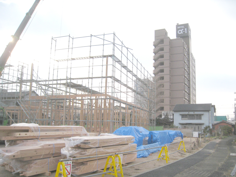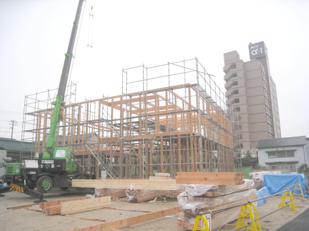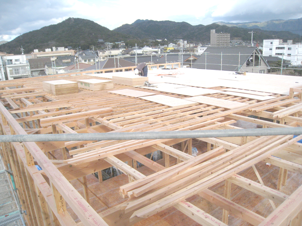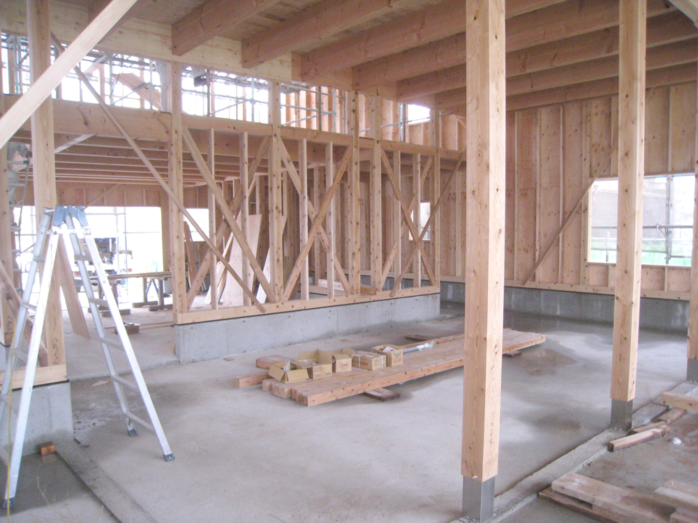 建て方から屋根下地、木造の軸組及び床張りまでの施工が弊社の施工範囲です。