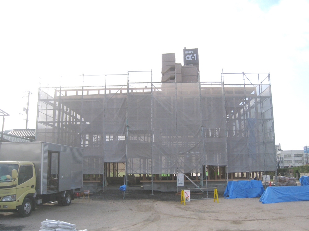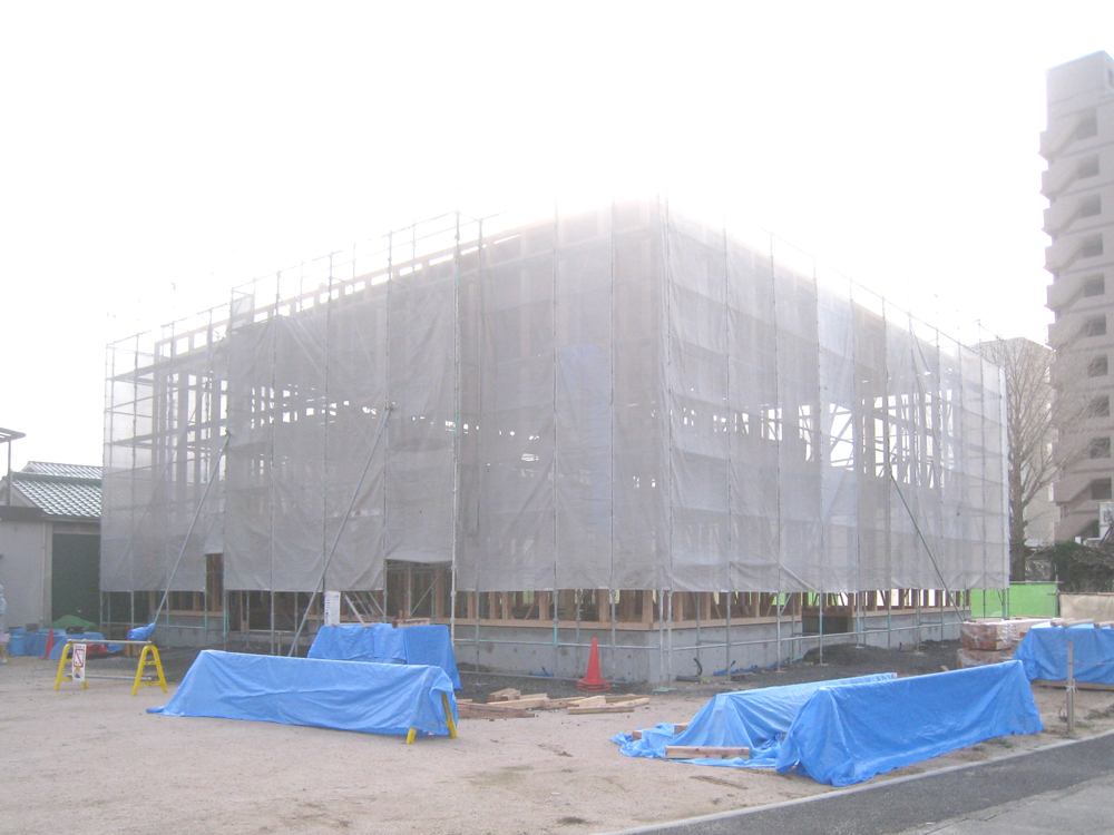 延べ床面積493.68uの木造二階建ての事務所新築工事です