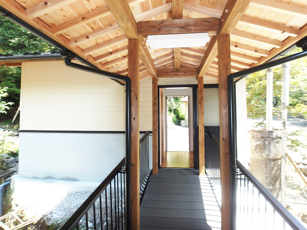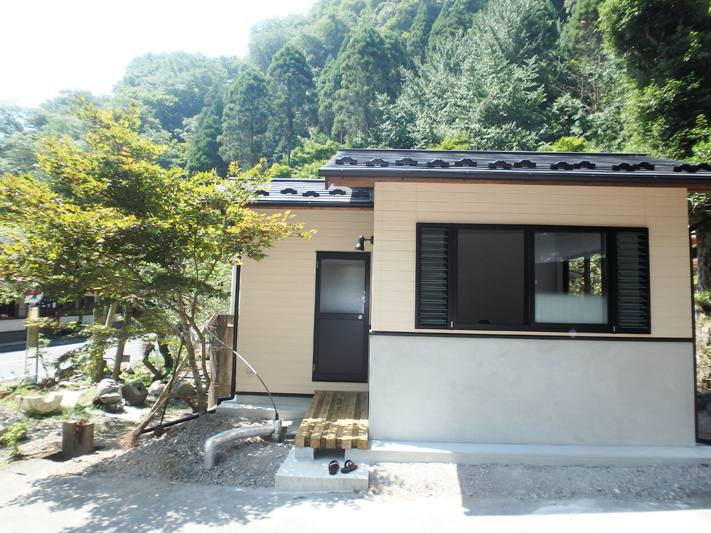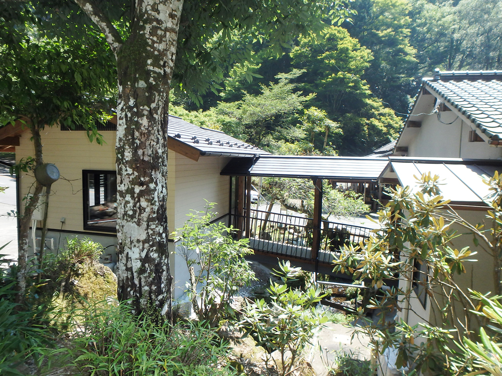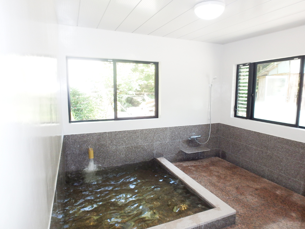 以前の温泉が自宅から20mから30m程度離れていて夜などは寒くて使い辛い理由から自宅から渡廊下でつなぎ施設も新しくして気持ちよく入浴して頂いてます。