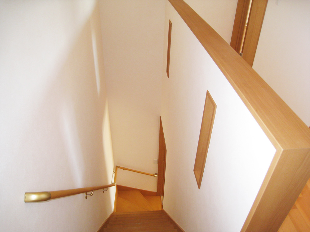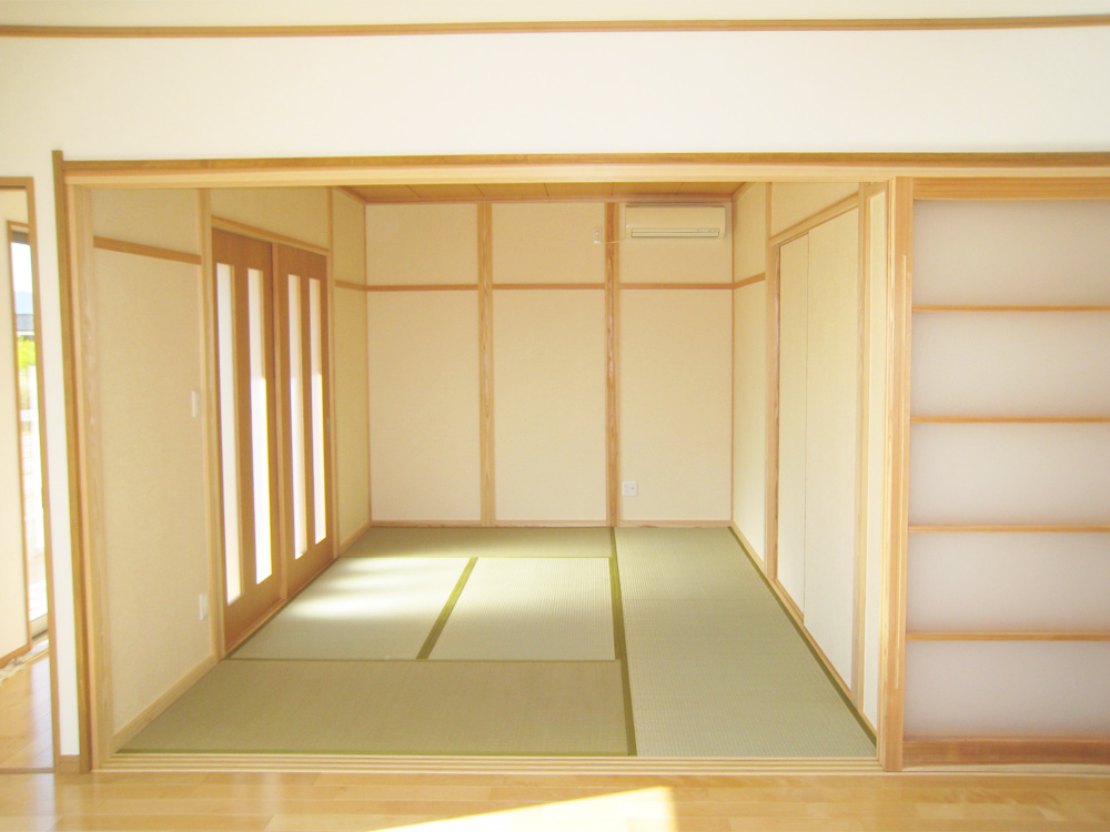 お子様が就学されるのを機に校区に近い場所をとのご依頼を受け施主様のご実家近くの自己所有地(畑)を造成し施工させて頂きました。土地の形状の都合で二階建にて設計致しました。下のお子様がまだ小さい事もあり、キッズルーム等を設け、階段の上り口も危険防止のドアを設置致しました。2階に子供部屋を2室設け可動式間仕切で仕切り1室としても利用できる様に施工致しました。キッズルームでお子様が楽しくピアノの練習をされていると思います。