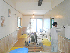 今回はリビングの壁を自然素材の珪藻土の塗り壁にするため左官工事をしました。